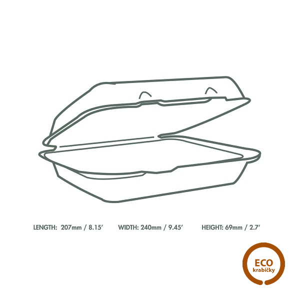 Ekologický jednodielny menu box s objemom 1300 ml je ideálny obal pre jednoporcie s viacerými zložkami: hlavné jedlo + príloha + omáčka.