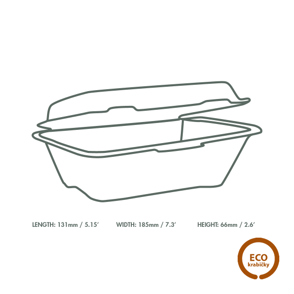 Ekologický jednodielny menu box s objemom 600 ml je ideálny obal pre jednoporcie s viacerými zložkami: hlavné jedlo + príloha + omáčka.