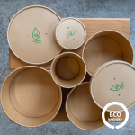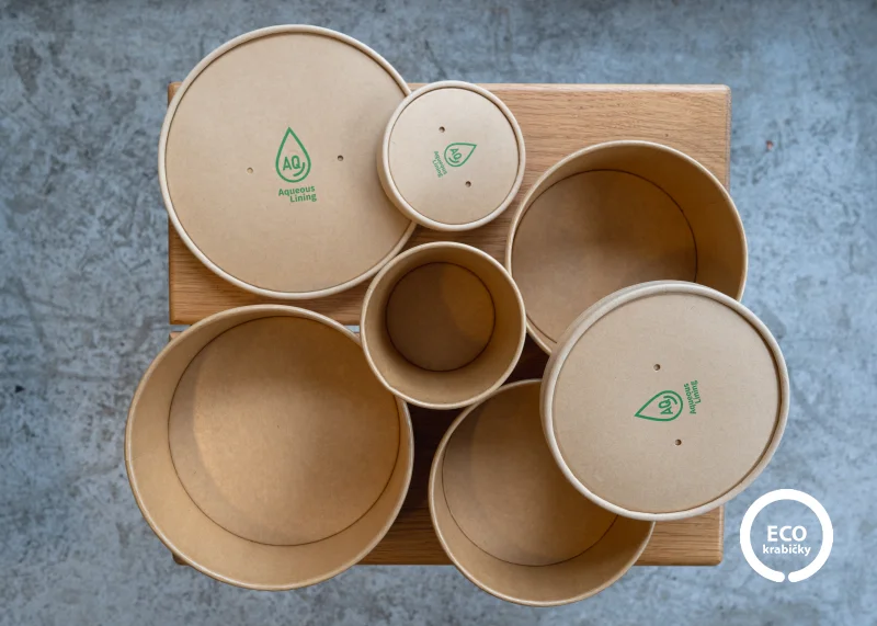 Ekologická jednorazová miska vyrobená z pevného kraftového papiera.