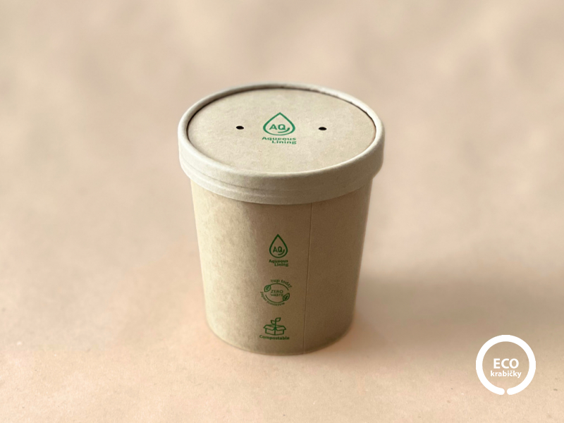 Ekologická jednorazová miska vyrobená z pevného kraftového papiera.