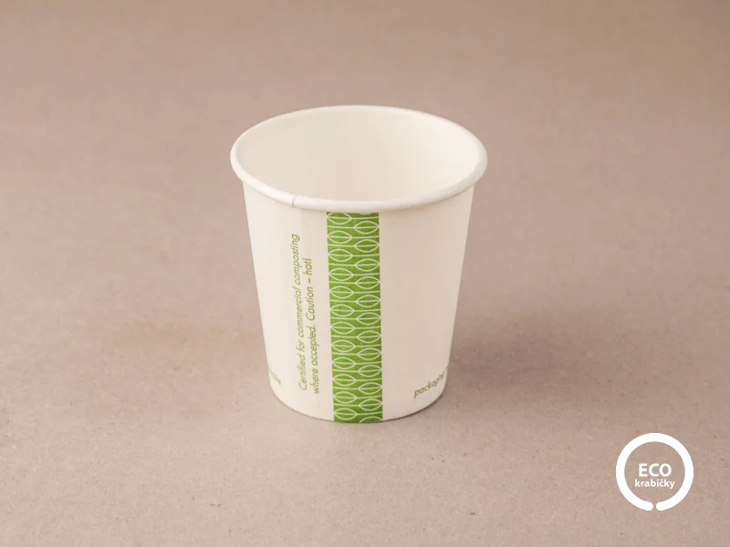 Ekologický papierový kelímok 114 ml (4 oz) od značky Vegware je ideálny pre espresso, čaj a ďalšie horúce nápoje.