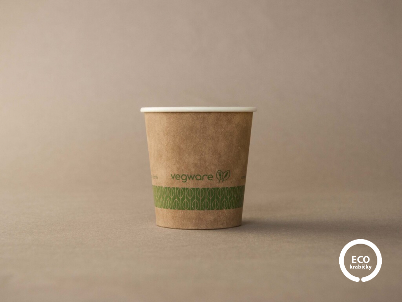 Ekologický papierový kelímok 114 ml (4 oz) od značky Vegware je ideálny pre espresso, čaj a ďalšie horúce nápoje.