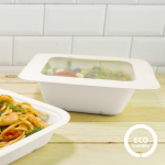 Viečko z bio papiera pre gurmánsky box je vhodné na teplé a studené pokrmy. Je skvelou voľbou pokiaľ máte prsty v gastro biznise a osud našej planéty vám nie je ľahostajný. Viečko je doplnkom ku gastro boxu z cukrovej trstiny. Obsahuje priehľadné okienko z PLA plastu, vďaka ktorému zákazník vidí obsah gastro obalu. Vďaka kvalitnému tesneniu je ideálny pre horúce jedlá.