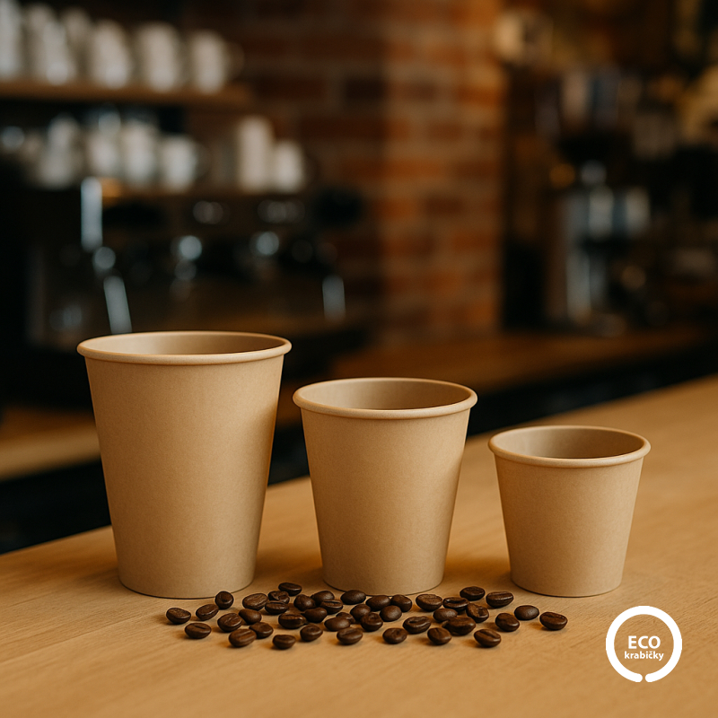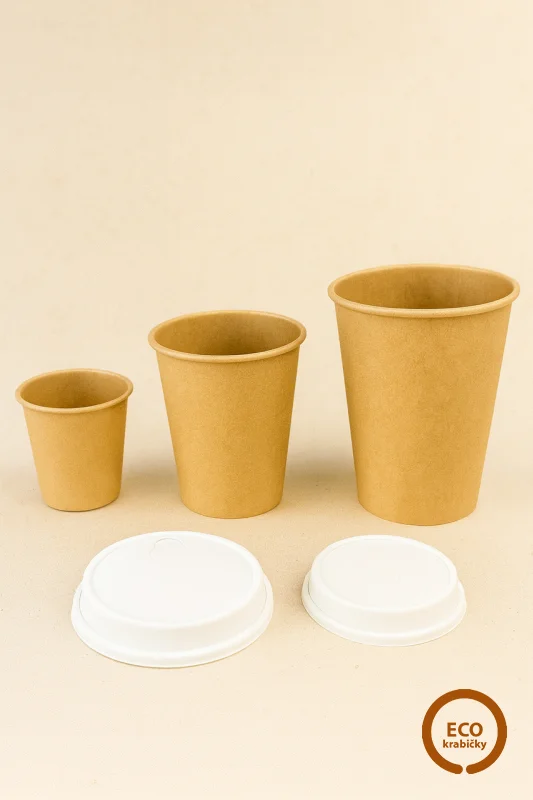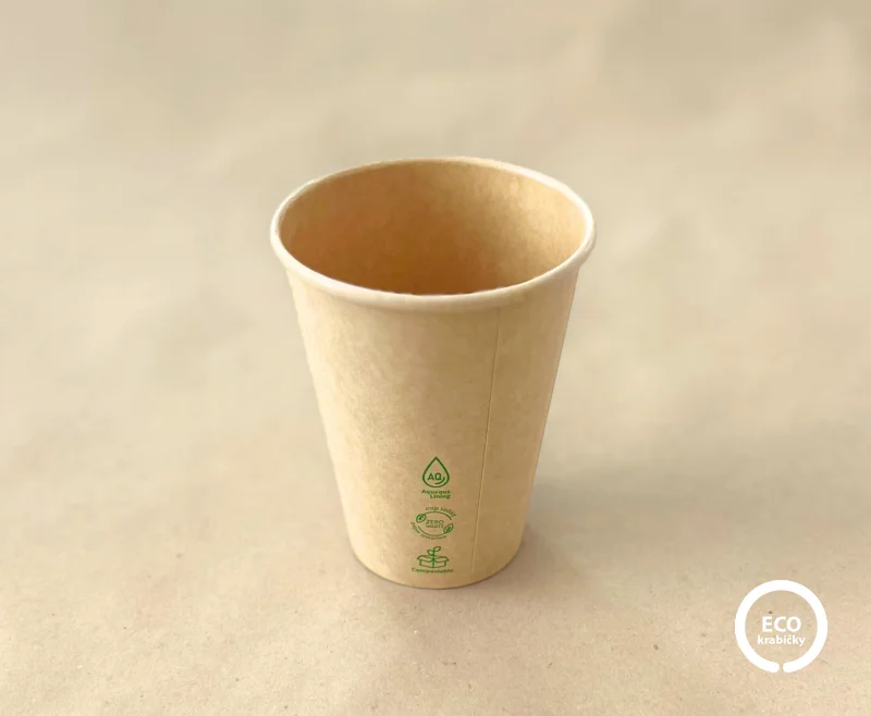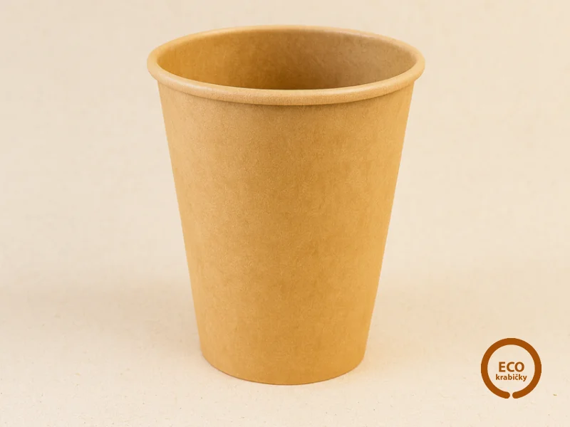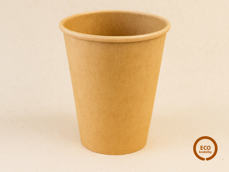 Ekologický kelímok PLASTIC FREE vyrobený z pevného kraftového papiera.