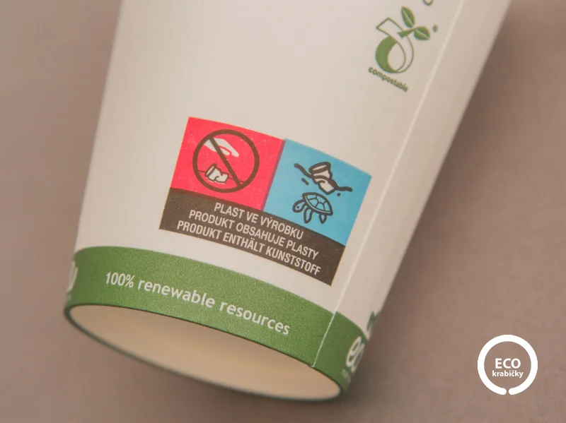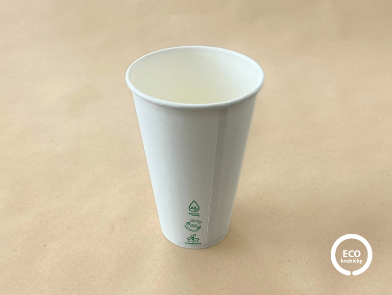 Ekologický kelímok PLASTIC FREE vyrobený z pevného kraftového papiera.