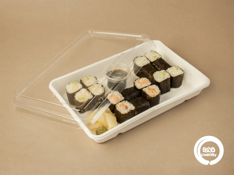 Miska z cukrovej trstiny je predovšetkým určená k podávaniu SUSHI. Ide o ekologický obal na jedlo, ktoré skvelo uskladní pokrmy a neznečistí našu planétu. Spodná časť obalu je totiž vyrobená z cukrovej trstiny, ktorá je jednoducho kompostovateľná. Produkt je možné skombinovať z viečkom, ktoré je vyrobené z recyklovaného plastu. Dajte vašim zákazníkom možnosť odniesť si obľúbené pokrmy v eko obaloch z cukrovej trstiny.